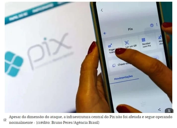 Apesar da dimensão do ataque, a infraestrutura central do Pix não foi afetada e segue operando normalmente